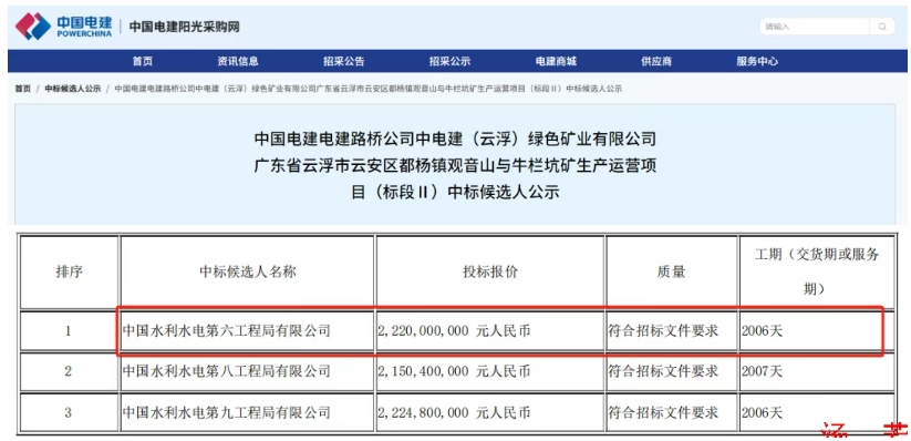 近日,中電建(云浮)綠色礦業(yè)有限公司廣東省云浮市云安區(qū)都楊鎮(zhèn)觀音山與牛欄坑礦生產(chǎn)運(yùn)營(yíng)項(xiàng)目公布中標(biāo)候選人。項(xiàng)目共分為2個(gè)標(biāo)段(標(biāo)段Ⅰ、標(biāo)段Ⅱ)進(jìn)行招標(biāo),水電六局皆為第一候選人,總報(bào)價(jià)超34.52億元。 據(jù)了解,云浮項(xiàng)目包括觀音山和牛欄坑兩個(gè)礦區(qū),礦種均為建筑用花崗巖,兩礦區(qū)相鄰300m,礦區(qū)距云浮市約21km。礦區(qū)至云安區(qū)西江碼頭直距約3-5km,交通條件便利。兩礦區(qū)總投資超百億元,設(shè)計(jì)可開采總量3.76億立方米(約12.4億噸),礦山總服務(wù)年限20年。其中:觀音山礦區(qū)開采規(guī)模3500萬噸/年,牛欄坑礦區(qū)開采規(guī)模2300萬噸/年,兩礦區(qū)設(shè)計(jì)產(chǎn)能規(guī)模達(dá)6500萬噸/年。 此次招標(biāo)范圍包括兩礦區(qū)原料開采及生產(chǎn)加工系統(tǒng)運(yùn)營(yíng)與碼頭發(fā)運(yùn)。項(xiàng)目計(jì)劃服務(wù)周期截止時(shí)間為2030年6月30日;起始時(shí)間以觀音山礦預(yù)計(jì)投產(chǎn)時(shí)間起算,其中觀音山礦已于2024年投產(chǎn),牛欄坑礦預(yù)計(jì)2025年12月31日投產(chǎn)。計(jì)劃服務(wù)周期內(nèi)預(yù)計(jì)產(chǎn)量為2.4億噸。 具體信息 該項(xiàng)目生產(chǎn)加工系統(tǒng)包含建筑骨料加工系統(tǒng)和風(fēng)化料加工系統(tǒng)。建筑骨料加工系統(tǒng)設(shè)計(jì)生產(chǎn)規(guī)模6000萬噸/年,處理能力14000噸/小時(shí);風(fēng)化料加工系統(tǒng)規(guī)模按500萬噸/年考慮,處理觀音山礦區(qū)風(fēng)化料,其余部分風(fēng)化礦外售給周邊石場(chǎng),或者收購周邊現(xiàn)有石場(chǎng)進(jìn)行生產(chǎn)與排土,同時(shí)預(yù)留二期擴(kuò)建場(chǎng)地。現(xiàn)有風(fēng)化料加工系統(tǒng)處理能力按照1200噸/小時(shí)設(shè)計(jì)。 外運(yùn)碼頭設(shè)計(jì)發(fā)運(yùn)能力7050萬噸/年,共分兩期建設(shè),其中一期5個(gè)泊位,碼頭岸線長(zhǎng)500米,設(shè)計(jì)發(fā)運(yùn)能力2500萬噸/年;二期10個(gè)泊位,碼頭岸線長(zhǎng)1000米,設(shè)計(jì)發(fā)運(yùn)能力4550萬噸/年。 兩礦區(qū)原料開采及生產(chǎn)加工系統(tǒng)運(yùn)營(yíng)與碼頭發(fā)運(yùn)招標(biāo)范圍 標(biāo)段Ⅰ:原料開采工作范圍與主要內(nèi)容包括但不限于:開采范圍內(nèi)的覆蓋層剝離,鏟裝、運(yùn)輸至排土場(chǎng)或周邊廢舊礦坑;全強(qiáng)風(fēng)化、中風(fēng)化、微未風(fēng)化巖石的開采,分類分級(jí)鏟裝、運(yùn)輸、卸料至技術(shù)要求明確的溜井平臺(tái)或者相應(yīng)位置卸料口、高邊坡監(jiān)測(cè)、標(biāo)段運(yùn)營(yíng)期內(nèi)所需的監(jiān)控量測(cè)等全部?jī)?nèi)容,以及為完成標(biāo)段工作內(nèi)容所需的全部附屬工作。 標(biāo)段Ⅱ:生產(chǎn)加工系統(tǒng)運(yùn)營(yíng)與碼頭發(fā)運(yùn)(不含專用輸電變電站的維護(hù))工作范圍與主要內(nèi)容包括但不限于:生產(chǎn)加工、建筑骨料加工系統(tǒng)、風(fēng)化料加工系統(tǒng)、碼頭發(fā)運(yùn)系統(tǒng)與廠礦區(qū)生產(chǎn)生活設(shè)施的運(yùn)營(yíng)、維護(hù)、管理等內(nèi)容;包括系統(tǒng)生產(chǎn)設(shè)備、設(shè)施、包括配電室的運(yùn)營(yíng)維護(hù)與管理;除設(shè)備正常大修外招標(biāo)人提供的生產(chǎn)設(shè)備的中、小修、日常維修保養(yǎng);廊道與膠帶運(yùn)輸系統(tǒng)運(yùn)營(yíng)維護(hù)。半成品與成品加工區(qū)、陸域堆場(chǎng)位置氣膜倉運(yùn)營(yíng)維護(hù),包含本標(biāo)段運(yùn)行維護(hù)過程所需的監(jiān)控、量測(cè),以及非原料開采質(zhì)量不符合要求引起的堵井與疏通等相關(guān)工作;不含招標(biāo)人提供的專用110kV+35kV變電站與輸電線路的運(yùn)營(yíng)維護(hù);生產(chǎn)加工、碼頭發(fā)運(yùn)、礦山、碼頭智慧管控系統(tǒng)的整體運(yùn)營(yíng)、維護(hù),以及生產(chǎn)加工系統(tǒng),碼頭發(fā)運(yùn)系統(tǒng)設(shè)備的運(yùn)行監(jiān)測(cè),以及為完成標(biāo)段工作內(nèi)容所需的全部監(jiān)控量測(cè)等附屬工作。