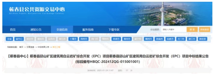 湖北省蘄春縣公共資源交易中心發(fā)布蘄春縣邱山礦區(qū)建筑用白云巖礦綜合開發(fā)(EPC)項(xiàng)目中標(biāo)結(jié)果公告。中圖設(shè)計(jì)有限公司、蘄春城一建設(shè)有限公司以超2.44億元中標(biāo)該項(xiàng)目,項(xiàng)目計(jì)劃工期730日歷天。