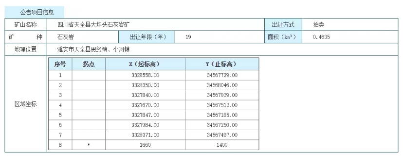 2025年2月21日,雅安市自然資源和規(guī)劃局發(fā)布公告,宣布將通過公開拍賣方式出讓四川省天全縣大坪頭石灰?guī)r礦采礦權(quán)。此次拍賣由雅安市政務(wù)服務(wù)和公共資源交易服務(wù)中心具體組織實施,起始價為1.8億元,擬出讓年限為19年,旨在推動礦產(chǎn)資源合理開發(fā)利用,助力地方經(jīng)濟發(fā)展。 該礦位于雅安市天全縣思經(jīng)鎮(zhèn)、小河鎮(zhèn),面積0.4635平方千米,開采礦種為石灰?guī)r,資源儲量達(dá)4611.7萬立方米,另可綜合開發(fā)伴生玄武巖377.80萬立方米。開采方式為露天開采,擬設(shè)年開采規(guī)模不低于240萬立方米,開采標(biāo)高范圍為+1660米至+1400米。根據(jù)要求,競得人需在正式投產(chǎn)后2年內(nèi)申報進入省級及以上綠色礦山名錄庫,并嚴(yán)格履行礦山地質(zhì)環(huán)境保護與土地復(fù)墾義務(wù)。 競買人須為境內(nèi)有效存續(xù)的營利法人單位,且未被列入失信聯(lián)合懲戒名單,需具備與開采規(guī)模匹配的資金實力,且不接受聯(lián)合體競買。拍賣將于2025年3月25日13:30在雅安市政務(wù)服務(wù)和公共資源交易服務(wù)中心舉行,有意者可于2月21日至3月24日期間現(xiàn)場報名,并繳納競買保證金。 公告明確,采礦權(quán)出讓不包含土地使用權(quán),競得人需自行承擔(dān)資源開發(fā)中的安全、環(huán)保、土地協(xié)調(diào)等風(fēng)險,并獨立解決礦區(qū)范圍內(nèi)土地征用及補償問題。此外,競得人須額外支付前期出讓成本484.66萬元,并依法辦理安全生產(chǎn)、環(huán)保、用地等行政許可手續(xù)。 公告強調(diào),對串標(biāo)、虛假競買、逾期繳費等違約行為將采取嚴(yán)厲措施,包括取消資格、納入失信名單、沒收保證金等,并追究法律責(zé)任。同時,競得人需按《采礦權(quán)出讓合同》履行義務(wù),確保礦山開發(fā)合規(guī)有序。 此次采礦權(quán)拍賣信息通過全國礦業(yè)權(quán)登記系統(tǒng)、雅安市自然資源和規(guī)劃局官網(wǎng)及公共資源交易平臺同步發(fā)布,標(biāo)志著雅安市在礦產(chǎn)資源市場化配置和綠色礦山建設(shè)方面邁出重要一步。