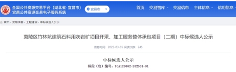 3月5日,湖北省宜昌市夷陵區(qū)竹林坑建筑石料用灰?guī)r礦項(xiàng)目開采、加工服務(wù)整體承包項(xiàng)目(二期)公布中標(biāo)候選人。中國葛洲壩集團(tuán)路橋工程有限公司、中國葛洲壩集團(tuán)易普力股份有限公司、中國葛洲壩集團(tuán)第一工程有限公司分列第一、二、三中標(biāo)候選人,投標(biāo)報(bào)價分別為6308.4萬元、6527.6萬元、6536萬元。 根據(jù)公告,該項(xiàng)目位于宜昌市夷陵區(qū)龍泉鎮(zhèn)雙泉村,距夷陵區(qū)龍泉鎮(zhèn)17公里,距宜昌東站36公里。礦區(qū)面積0.499平方公里,灰?guī)r資源儲量約7800萬噸。開采方式為露天開采。礦山各項(xiàng)手續(xù)齊全,采礦許可證、安全生產(chǎn)許可證均在有效期。 項(xiàng)目實(shí)行礦山開采、加工服務(wù)整體承包模式,主要招標(biāo)內(nèi)容包括礦山開采、骨料加工、項(xiàng)目移交等,開采、加工規(guī)模預(yù)計(jì)200萬噸/年,配套骨料生產(chǎn)線生產(chǎn)能力為1600噸/小時。開采服務(wù)期自合同簽訂之日起2年,在合同期內(nèi)每一年對中標(biāo)人合同履約情況進(jìn)行考核,考核內(nèi)容包括進(jìn)度、質(zhì)量、安全、環(huán)保、人員與設(shè)備投入等,考核合格的繼續(xù)履行合同;考核不合格的,采購人約談中標(biāo)人負(fù)責(zé)人,限期整改,若限期內(nèi)未整改或整改不到位的,采購人有權(quán)隨時終止合同。
