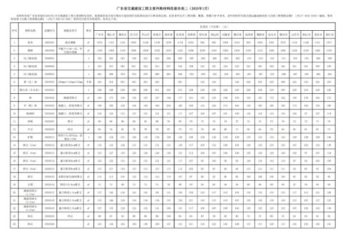 近日,廣東省建設(shè)工程標(biāo)準(zhǔn)定額站發(fā)布《廣東省2025年1月交通建設(shè)工程外購(gòu)材料全省綜合信息價(jià)》其中包括廣東省21市1月份砂、機(jī)制砂、碎石等詳細(xì)價(jià)格,對(duì)于廣東砂石銷(xiāo)售、工程估算、概算、預(yù)算計(jì)價(jià)有重要參考價(jià)值。 廣東省交通建設(shè)工程主要外購(gòu)材料信息價(jià)表二 (2025年1月) 砂(路面用堆方) 廣州市184元/m³,佛山市175元/m³,肇慶市64元/m³,江門(mén)市154元/m³,中山市167元/m³,珠海市167元/m³,深圳市194元/m³,東莞市177元/m³,惠州市154元/m³,韶關(guān)市150元/m³,清遠(yuǎn)市155元/m³,河源市168元/m³,梅州市150元/m³,汕尾市164元/m³,揭陽(yáng)市167元/m³,汕頭市172元/m³,潮州市162元/m³,云浮市169元/m³,陽(yáng)江市 159元/m³,茂名市 169元/m³,湛江市 172元/m³。 中(粗)砂(混凝土、砂漿用堆方) 廣州市199元/m³,佛山市189元/m³,肇慶市169元/m³,江門(mén)市164元/m³,中山市182元/m³,珠海市186元/m³,深圳市204元/m³,東莞市186元/m³,惠州市169元/m³,韶關(guān)市154元/m³,清遠(yuǎn)市165元/m³,河源市174元/m³,梅州市164元/m³,汕尾市179元/m³,揭陽(yáng)市182元/m³,汕頭市186元/m³,潮州市182元/m³,云浮市174元/m³,陽(yáng)江市164元/m³,茂名市179元/m³,湛江市186元/m³。 機(jī)制砂(混凝土、砂漿用堆方) 廣州市122元/m³,佛山市122元/m³,肇慶市115元/m³,江門(mén)市117元/m³,中山市121元/m³,珠海市121元/m³,深圳市121元/m³,東莞市117元/m³,惠州市107元/m³,韶關(guān)市100元/m³,清遠(yuǎn)市107元/m³,河源市101元/m³,梅州市100元/m³,汕尾市116元/m³,揭陽(yáng)市116元/m³,汕頭市116元/m³,潮州市116元/m³,云浮市102元/m³,陽(yáng)江市97元/m³,茂名市107元/m³,湛江市114元/m³ 砂礫(堆方) 廣州市90元/m³,佛山市80元/m³,肇慶市86元/m³,江門(mén)市84元/m³,中山市83元/m³,珠海市84元/m³,深圳市76元/m³,東莞市83元/m³,惠州市79元/m³,韶關(guān)市72元/m³,清遠(yuǎn)市75元/m³,河源市79元/m³,梅州市72元/m³,汕尾市72元/m³,揭陽(yáng)市75元/m³,汕頭市75元/m³,潮州市70元/m³,云浮市72元/m³,陽(yáng)江市72元/m³,茂名市77元/m³, 湛江市70元/m³。 片石(碼方) 廣州市85元/m³,佛山市76元/m³,肇慶市81元/m³,江門(mén)市78元/m³,中山市78元/m³,珠海市78元/m³,深圳市87元/m³,東莞市73元/m³,惠州市73元/m³,韶關(guān)市76元/m³,清遠(yuǎn)市68元/m³,河源市80元/m³,梅州市71元/m³,汕尾市65元/m³,揭陽(yáng)市65元/m³,汕頭市70元/m³,潮州市65元/m³,云浮市81元/m³,陽(yáng)江市81元/m³,茂名市81元/m³,湛江市73元/m³。 礦粉(粒徑<0.074cm,質(zhì)量比>70%) 廣州市149元/t,佛山市134元/t,肇慶市153元/t,江門(mén)市136元/t,中山市136元/t,珠海市136元/t,深圳市136元/t,東莞市136元/t,惠州市136元/t,韶關(guān)市139元/t,清遠(yuǎn)市136元/t,河源市139元/t,梅州市139元/t,汕尾市133元/t,揭陽(yáng)市133元/t,汕頭市133元/t,潮州市133元/t,云浮市149元/t,陽(yáng)江市149元/t,茂名市149元/t,湛江市146元/t。 碎石(2cm)最大粒徑2cm堆方 廣州市132元/m³, 佛山市132元/m³, 肇慶市124元/m³, 江門(mén)市131元/m³, 中山市131元/m³, 珠海市131元/m³, 深圳市131元/m³, 東莞市126元/m³, 惠州市117元/m³, 韶關(guān)市105元/m³, 清遠(yuǎn)市112元/m³, 河源市106元/m³, 梅州市105元/m³, 汕尾市125元/m³, 揭陽(yáng)市125元/m³, 汕頭市125元/m³, 潮州市125元/m³, 云浮市107元/m³, 陽(yáng)江市102元/m³ ,茂名市112元/m³ ,湛江市118元/m³。 碎石(4cm)最大粒徑4cm堆方 廣州市127元/m³,佛山市127元/m³,肇慶市119元/m³,江門(mén)市126元/m³,中山市126元/m³,珠海市126元/m³,深圳市126元/m³,東莞市121元/m³,惠州市112元/m³,韶關(guān)市100元/m³,清遠(yuǎn)市107元/m³,河源市100元/m³,梅州市100元/m³,汕尾市120元/m³,揭陽(yáng)市120元/m³,汕頭市120元/m³,潮州市120元/m³,云浮市102元/m³,陽(yáng)江市97元/m³,茂名市107元/m³,湛江市114元/m³。 碎石(6cm)最大粒徑6cm堆方 廣州市122元/m³,佛山市122元/m³,肇慶市115元/m³,江門(mén)市121元/m³,中山市121元/m³,珠海市121元/m³,深圳市121元/m³,東莞市117元/m³,惠州市107元/m³,韶關(guān)市95元/m³,清遠(yuǎn)市102元/m³,河源市95元/m³,梅州市95元/m³,汕尾市116元/m³,揭陽(yáng)市116元/m³,汕頭市116元/m³,潮州市116元/m³,云浮市97元/m³,陽(yáng)江市92元/m³,茂名市102元/m³,湛江市109元/m³。 碎石(8cm)最大粒徑8cm堆方 廣州市117元/m³,佛山市117元/m³,肇慶市110元/m³,江門(mén)市117元/m³,中山市117元/m³,珠海市117元/m³,深圳市117元/m³,東莞市112元/m³,惠州市102元/m³,韶關(guān)市90元/m³,清遠(yuǎn)市97元/m³,河源市90元/m³,梅州市90元/m³,汕尾市111元/m³,揭陽(yáng)市111元/m³,汕頭市111元/m³,潮州市111元/m³,云浮市92元/m³,陽(yáng)江市87元/m³,茂名市97元/m³,湛江市104元/m³。 碎石(未篩分碎石統(tǒng)料堆方) 廣州市113元/m³,佛山市113元/m³,肇慶市105元/m³,江門(mén)市112元/m³,中山市112元/m³,珠海市112元/m³,深圳市114元/m³,東莞市107元/m³,惠州市97元/m³,韶關(guān)市85元/m³,清遠(yuǎn)市92元/m³,河源市85元/m³,梅州市85元/m³,汕尾市106元/m³,揭陽(yáng)市106元/m³,汕頭市106元/m³,潮州市106元/m³,云浮市87元/m³,陽(yáng)江市83元/m³,茂名市92元/m³,湛江市99元/m³。 石屑(粒徑≤0.8cm堆方) 廣州市73元/m³,佛山市73元/m³,肇慶市68元/m³,江門(mén)市73元/m³,中山市73元/m³,珠海市73元/m³,深圳市74元/m³,東莞市69元/m³,惠州市63元/m³,韶關(guān)市56元/m³,