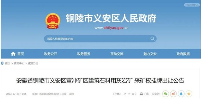 近日,安徽銅陵市義安區(qū)自然資源和規(guī)劃(林業(yè))分局發(fā)布公告,撤銷銅陵市義安區(qū)董沖礦區(qū)建筑石料用灰?guī)r礦采礦權(quán)掛牌成交結(jié)果。原文如下: