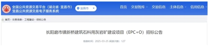 3月25日,湖北省宜昌公共資源交易電子服務(wù)平臺(tái)發(fā)布長(zhǎng)陽磨市鎮(zhèn)新橋建筑石料用灰?guī)r礦建設(shè)項(xiàng)目(EPC+O)招標(biāo)公告,投標(biāo)截止時(shí)間為2025年4月16日。 該項(xiàng)目位于長(zhǎng)陽磨市鎮(zhèn)三口堰村,礦區(qū)擬開采面積0.4655平方公里,建設(shè)年產(chǎn)500萬噸建筑石料用灰?guī)r礦綠色礦山,采用露天開采,建設(shè)生產(chǎn)加工基地,購(gòu)置空氣壓縮機(jī)、鉆孔、鏟裝、破碎機(jī)、雙輥破、運(yùn)輸皮帶機(jī)、整形、清洗等生產(chǎn)設(shè)備;配套建設(shè)環(huán)保、公用工程、辦公設(shè)施等基礎(chǔ)設(shè)施。 應(yīng)招標(biāo)人要求,投標(biāo)人須承諾對(duì)三口堰采石場(chǎng)舊礦區(qū)進(jìn)行資產(chǎn)收購(gòu)(包含但不限于加工區(qū)、生活區(qū)、辦公區(qū)、設(shè)備等,根據(jù)資產(chǎn)移交評(píng)估報(bào)告,現(xiàn)資產(chǎn)約6445萬元,后經(jīng)雙方確認(rèn)且移交后確定具體金額,且需配合處理三口堰采石場(chǎng)舊礦區(qū)后續(xù)遺留問題)。 項(xiàng)目招標(biāo)范圍包括加工區(qū)的設(shè)計(jì)、開采區(qū)及加工區(qū)的采購(gòu)、施工及開采加工區(qū)的整體運(yùn)營(yíng)。主要內(nèi)容范圍如下: (1)設(shè)計(jì):包括但不限于本項(xiàng)目:①加工區(qū)初步設(shè)計(jì)、施工圖設(shè)計(jì);②進(jìn)場(chǎng)道路、配電房、值班室、中控室、廢水系統(tǒng)等配套輔助設(shè)施初步設(shè)計(jì)、施工圖設(shè)計(jì)。 (2)施工工程主要內(nèi)容: ①采礦區(qū)土建工程:包括但不限于基建期剝離、礦界內(nèi)的運(yùn)輸?shù)缆贰⒒ㄆ脚_(tái)及其他采礦區(qū)配套設(shè)施建設(shè)等,包括《安全設(shè)施設(shè)計(jì)》中的全部建設(shè)內(nèi)容。 ②加工區(qū)土建工程:包含但不限于場(chǎng)地平整、地基處理、水土保持、礦區(qū)界外至加工區(qū)道路、加工廠區(qū)聯(lián)絡(luò)道路、防雷保護(hù)工程、給排水工程、消防工程、防洪工程、水處理工程、系統(tǒng)性配套設(shè)備樓梯和平臺(tái)、皮帶廊鋼結(jié)構(gòu)、防腐、保溫、倉(cāng)儲(chǔ)區(qū)、地磅基礎(chǔ)、生產(chǎn)配套所需的現(xiàn)場(chǎng)辦公與生活用房以及為保證達(dá)產(chǎn)目標(biāo)所發(fā)生的全部工程量施工和設(shè)備采購(gòu)。 (3)運(yùn)營(yíng)服務(wù)期礦山開采及生產(chǎn)加工的運(yùn)營(yíng)內(nèi)容包括: ①礦山開采:礦區(qū)開采期內(nèi)包括穿孔、爆破、二次破碎及裝車、運(yùn)輸、卸礦等生產(chǎn)工序所包含的所有工作內(nèi)容及與采礦工程相關(guān)的所有輔助性工作、礦山地質(zhì)與環(huán)境防治及監(jiān)測(cè)(包括但不限于臨界邊坡、爆破及環(huán)境監(jiān)測(cè)等內(nèi)容)及礦山開采期間的安全、環(huán)保、職業(yè)衛(wèi)生管理、礦山安全費(fèi)投入、土地復(fù)墾、水土保持等相關(guān)工作。具體開采范圍及標(biāo)高按照招標(biāo)人提供的項(xiàng)目需求實(shí)施,以具體招標(biāo)人實(shí)際下達(dá)的生產(chǎn)計(jì)劃為準(zhǔn)。 ②骨料生產(chǎn)線砂石加工:主要工程內(nèi)容包括但不限于生產(chǎn)線設(shè)備的操作、維修保養(yǎng)人員組織和實(shí)施運(yùn)行,砂石加工所需全部輔材(包含加工生產(chǎn)線設(shè)備設(shè)施)的采購(gòu)、儲(chǔ)存、領(lǐng)用等工作,礦區(qū)物料轉(zhuǎn)撥、固廢存放及處置、水資源的購(gòu)入和污水及粉塵污染、噪音擾民等處理或防治工作;砂石加工過程中做好文明生產(chǎn)、安全管理、質(zhì)量控制、產(chǎn)量保證等一系列工作。 ③涉及到的審批及相關(guān)延伸服務(wù):應(yīng)包括但不限于爆破方案、炸藥等審批和安全等服務(wù)。