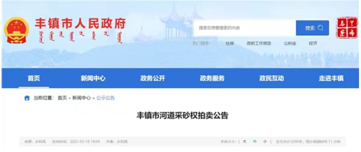 內蒙古豐鎮(zhèn)市水利局決定以拍賣方式出讓豐鎮(zhèn)市泉子溝、五號溝和索家溝3條河道采砂權,開采總量為31.45萬方,規(guī)劃期為2025-2027年,分3年開采。其中泉子溝河道標段起始價206萬元、五號溝河道標段起始價219萬元、索家溝河道標段起始價208萬元,出讓單價為20元/方。 本次只拍賣標的河道的砂石開采權。采砂所需的道路、堆砂場和碎石加工廠等砂石生產經營設施設備由采砂權競得人依法自行解決,并在采砂權到期或提前終止后自行處理。出讓人不承擔由此產生的任何法律責任和經濟責任。 采砂實施過程中,嚴格執(zhí)行《規(guī)劃》中明確的期限和采砂控制量,實行開采時間和開采控制量雙控指標管理,若采砂作業(yè)在有限期內提前達到可采控制總量,采砂權自動終止。各開采區(qū)開采范圍、開采深度、開采方式、可采期、禁采期、可采區(qū)、禁采區(qū)和年度控制采砂量等嚴格按照《規(guī)劃》執(zhí)行。