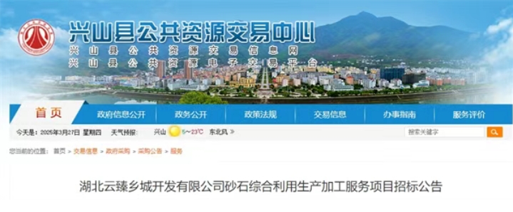 日前,湖北宜昌興山公共資源交易中心發(fā)布湖北云臻鄉(xiāng)城開(kāi)發(fā)有限公司砂石綜合利用生產(chǎn)加工服務(wù)項(xiàng)目招標(biāo)公告。該項(xiàng)目預(yù)算單價(jià)14.95元/噸,不接受聯(lián)合體投標(biāo)及進(jìn)口產(chǎn)品,專門(mén)面向中小微企業(yè)招標(biāo)。 投標(biāo)文件提交截止時(shí)間:2025年4月8日;招標(biāo)人電話:15997589123。 據(jù)悉,招標(biāo)企業(yè)湖北云臻鄉(xiāng)城開(kāi)發(fā)有限公司成立于2017年3月31日,法所屬行業(yè)為非金屬礦采選業(yè),經(jīng)營(yíng)范圍包含非煤礦山礦產(chǎn)資源開(kāi)采、河道采砂、建設(shè)工程施工、港口經(jīng)營(yíng)、房地產(chǎn)開(kāi)發(fā)經(jīng)營(yíng)、建筑勞務(wù)分包等。