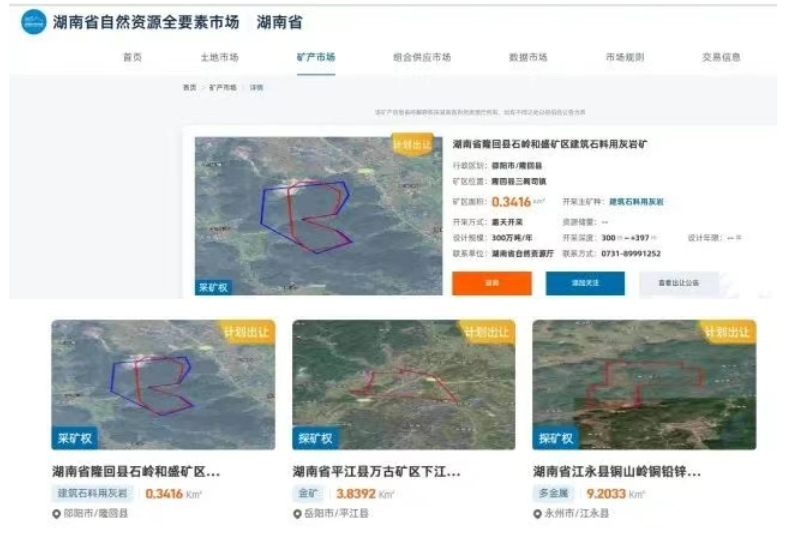 湖南省自然資源廳近日創(chuàng)新推出“不打烊的礦業(yè)權(quán)超市”,在湖南省自然資源全要素市場(chǎng)上線,旨在深化礦產(chǎn)資源要素市場(chǎng)化配置改革,持續(xù)加大礦業(yè)權(quán)推介出讓力度,進(jìn)一步激發(fā)礦業(yè)權(quán)市場(chǎng)活力。 “不打烊的礦業(yè)權(quán)超市”依托湖南省自然資源全要素市場(chǎng),將礦業(yè)權(quán)交易與傳統(tǒng)超市理念深度融合,通過(guò)線上線下一體化服務(wù),實(shí)現(xiàn)礦業(yè)權(quán)出讓信息集中發(fā)布、政策咨詢、供需對(duì)接等全流程功能。 首批上架礦業(yè)權(quán)共計(jì)15個(gè)(探礦權(quán)10個(gè)、采礦權(quán)5個(gè)),探礦權(quán)分布于平江、臨武、醴陵、雙峰、桃江等9個(gè)縣市區(qū),涵蓋錳、銅、鉛、鋅、金、螢石等礦種,已開(kāi)展不同程度的前期勘查工作,具備較好的找礦潛力;采礦權(quán)分布于寧鄉(xiāng)、攸縣、隆回等5個(gè)縣市區(qū),均為砂石土類(lèi)礦產(chǎn),儲(chǔ)量規(guī)模均達(dá)中型以上。 所有礦業(yè)權(quán)均標(biāo)注“商品詳情”,地理位置、面積、礦種、以往地質(zhì)工作、資源潛力分析、出讓年限、起始價(jià)等信息一目了然,并配套礦區(qū)實(shí)景視頻,讓投資者“看得明白、買(mǎi)得放心”。同時(shí),投資者對(duì)心儀礦業(yè)權(quán)可添加關(guān)注,將其加入個(gè)人關(guān)注列表,便于后續(xù)追蹤動(dòng)態(tài)。 “不打烊的礦業(yè)權(quán)超市”正式運(yùn)行,標(biāo)志著湖南省礦業(yè)權(quán)交易邁入透明化、便利化新階段。下一步,湖南省自然資源事務(wù)中心將協(xié)助湖南省自然資源廳持續(xù)“補(bǔ)貨”優(yōu)質(zhì)項(xiàng)目,逐步優(yōu)化“購(gòu)物環(huán)境”,為礦業(yè)經(jīng)濟(jì)高質(zhì)量發(fā)展注入新動(dòng)能。