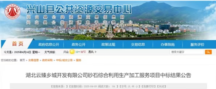 日前,湖北云臻鄉(xiāng)城開發(fā)有限公司砂石綜合利用生產(chǎn)加工服務(wù)項(xiàng)目公布中標(biāo)結(jié)果。當(dāng)?shù)匾幻衿?mdash;—興山淦輝建筑工程有限責(zé)任公司中標(biāo)該項(xiàng)目,中標(biāo)(成交)單價(jià)14.76元/噸。 該項(xiàng)目位于湖北省宜昌市興山縣,專門面向中小微企業(yè)招標(biāo),合同履行期限為1年(一年期滿投標(biāo)人履約滿足招標(biāo)人要求可續(xù)簽合同,續(xù)簽不超過2年,合同一年一簽)。 招標(biāo)企業(yè)湖北云臻鄉(xiāng)城開發(fā)有限公司成立于2017年3月31日,所屬行業(yè)為非金屬礦采選業(yè),經(jīng)營范圍包含非煤礦山礦產(chǎn)資源開采、河道采砂、建設(shè)工程施工、港口經(jīng)營、房地產(chǎn)開發(fā)經(jīng)營、建筑勞務(wù)分包等。 中標(biāo)企業(yè)興山淦輝建筑工程有限責(zé)任公司成立于2021年4月26日,注冊資本200萬元,經(jīng)營范圍包括土石方工程施工、機(jī)械設(shè)備租賃、建筑材料銷售、砼結(jié)構(gòu)構(gòu)件銷售、水泥制品制造、水泥制品銷售、建筑用石加工等。