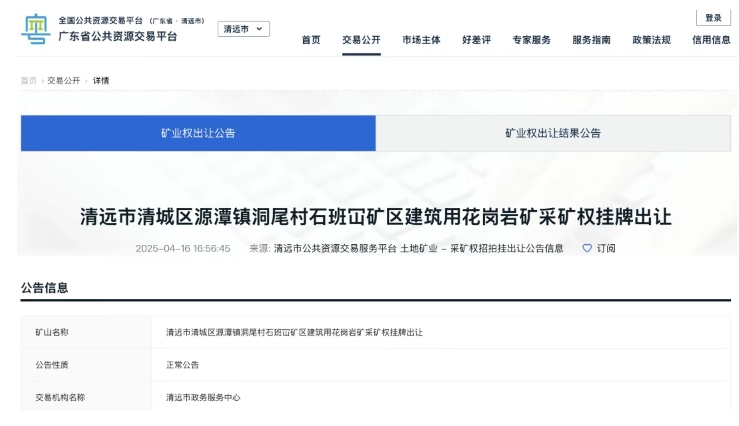 4月16日,廣東省公共資源交易平臺(tái)發(fā)布清遠(yuǎn)市清城區(qū)源潭鎮(zhèn)洞尾村石班冚礦區(qū)建筑用花崗巖礦采礦權(quán)掛牌出讓公告。該礦資源儲(chǔ)量共1270.19萬方,生產(chǎn)規(guī)模80萬方/年,出讓年限12.5年,起始價(jià)6005.36萬元,其他投入費(fèi)用4459.5萬元,資源價(jià)款超8.23元/方。 該采礦權(quán)位于清遠(yuǎn)市清城區(qū)源潭鎮(zhèn)洞尾村,本次出讓的僅為開采區(qū)的資源儲(chǔ)量。加工區(qū)、生活區(qū)須按開發(fā)利用方案設(shè)置,不可避免地平整出的土石方須依法經(jīng)政府公共資源交易平臺(tái)處置。掛牌時(shí)間2025年5月16日至2025年5月29日。 采礦權(quán)出讓收益繳納方式為一次性繳納,由競得人在簽訂成交確認(rèn)書和出讓合同后,在稅務(wù)部門開具的《繳款通知書》標(biāo)明的截止日期內(nèi)自行申報(bào)繳納。 此外,采礦權(quán)范圍內(nèi)的土地以租賃方式使用,土地的承租、土地流轉(zhuǎn)、青苗補(bǔ)償款等費(fèi)用合計(jì)3600萬元,由采礦權(quán)競得人承擔(dān)。如有遷墳費(fèi)、管線遷移費(fèi)、礦區(qū)影響范圍內(nèi)的房屋拆遷安置費(fèi)、生產(chǎn)過程中產(chǎn)生的包括但不限于邊坡崩塌讓第三方財(cái)產(chǎn)受損等其他問題及費(fèi)用存在,相關(guān)費(fèi)用由競得人據(jù)實(shí)另行支付。 本次出讓采礦權(quán)設(shè)立惠民資金共計(jì)600.5萬元,用于鄉(xiāng)村振興建設(shè)與礦山配套運(yùn)輸?shù)缆返慕ㄔO(shè)維護(hù)、礦區(qū)周邊的環(huán)境整治及地質(zhì)災(zāi)害防治。競得人還需支付采礦權(quán)勘查投入259萬元。 根據(jù)公告,本次出讓礦區(qū)范圍為石班冚礦山項(xiàng)目礦區(qū)面積開采區(qū)(A區(qū))面積0.3934平方公里(約590.17畝),覆蓋了舊礦坑修復(fù)難度較大的高陡邊坡。競得人需對(duì)礦區(qū)范圍及劃定的周邊392畝裸露地塊一并完成礦區(qū)修復(fù)工作,最終完成礦區(qū)生態(tài)修復(fù)面積982.17畝。