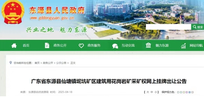 近日,廣東河源東源縣自然資源局發(fā)布廣東省東源縣仙塘鎮(zhèn)坭坑礦區(qū)建筑用花崗巖礦采礦權(quán)掛牌出讓公告。該項(xiàng)目資源儲量807.49萬方,設(shè)計(jì)開采規(guī)模70萬方/年,出讓年限12年,掛牌起始價2142.38萬元。經(jīng)計(jì)算,該項(xiàng)目起拍成本2.65元/方。