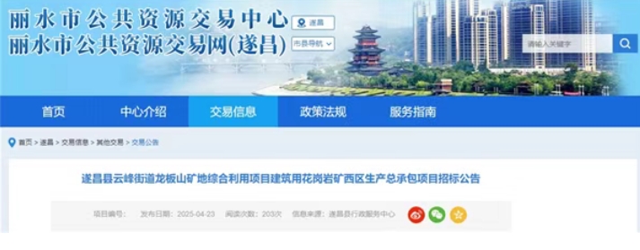 4月23日,浙江省麗水市公共資源交易中心發(fā)布遂昌縣云峰街道龍板山礦地綜合利用項目建筑用花崗巖礦西區(qū)生產(chǎn)總承包項目招標(biāo)公告,2025年5月14日投標(biāo)截止。 結(jié)算采用固定綜合單價,項目最高限價(含稅)如下:普通開挖、開采8元/噸;爆破開挖、開采25元/方;荒料石材的機械作業(yè)(傳統(tǒng)切割)66元/米;荒料石材的機械作業(yè)(繩鋸切割)90元/米。 運輸費用在礦地紅線范圍內(nèi)部以及出礦地紅線范圍5公里(含)以內(nèi)運距不另計費,超過5公里的,每公里按0.5元/噸(1.26元/方)另行支付費用,不足1公里的按1公里計。 據(jù)了解,該項目位于麗水市遂昌縣經(jīng)開區(qū)龍板山區(qū)塊LBS-10-1地塊,計劃總投資約2.5億元,礦區(qū)資源儲量3573萬噸,生產(chǎn)規(guī)模1200萬噸/年,出讓年限4年。2022年7月14日,項目業(yè)主遂昌經(jīng)盛新能源有限公司以7.1億元競得該項目礦山。 該項目主要建設(shè)時產(chǎn)1000噸山砂(0-3mm)、1200噸機制砂產(chǎn)能(0-3、3-10、10-20、20-31.5mm,其中0-3mm時產(chǎn)達到700噸)的生產(chǎn)線。2024年3月15日,世邦工業(yè)科技集團股份有限公司成功中標(biāo)項目生產(chǎn)線設(shè)備采購及安裝,中標(biāo)價7178.18萬元。 本次招標(biāo)內(nèi)容為開采、礦山治理與恢復(fù)等生產(chǎn)總承包,招標(biāo)范圍為礦山西區(qū),涉及開挖(采)資源量約24.77萬方,其中風(fēng)化殼(山砂)約101.33萬方(187萬噸),基巖約124萬方(321萬噸,其中切割量約35萬方),覆蓋層(剝離物)約15.34萬方。