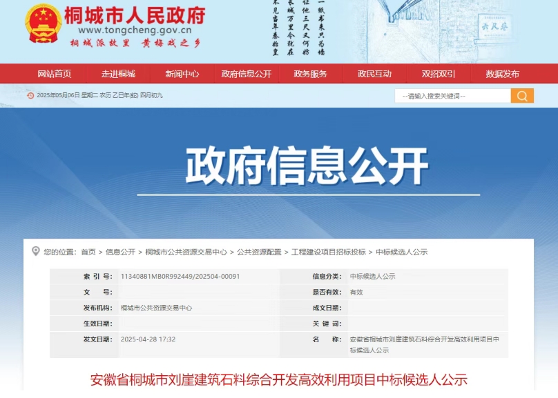 近日,安徽桐城公共資源交易中心發(fā)布安徽省桐城市劉崖建筑石料綜合開發(fā)高效利用項(xiàng)目中標(biāo)候選人。中國葛洲壩集團(tuán)第一工程有限公司、中國二冶集團(tuán)有限公司、中國電建集團(tuán)華東勘測設(shè)計(jì)研究院有限公司、安徽中帛實(shí)業(yè)有限公司組成的聯(lián)合體中標(biāo)。 投標(biāo)價為: 1.勘察設(shè)計(jì)費(fèi)用8170000元(含各項(xiàng)專題,不含Y100朝陽庵至童鋪段公路設(shè)計(jì)) 2.工程費(fèi)用按初步設(shè)計(jì)中工程費(fèi)用的89.78%。(按照招標(biāo)公告初步設(shè)計(jì)中工程費(fèi)用概算36817.98萬元計(jì)算,約3.3億) 3.礦山開采及砂石加工綜合單價22.49元/噸(其中開采綜合單價9元/噸,砂石加工綜合單價13.49元/噸) 該項(xiàng)目位于安徽省桐城市青草鎮(zhèn)及范崗鎮(zhèn)境內(nèi),主要建設(shè)內(nèi)容為范崗鎮(zhèn)童鋪村劉崖建筑石料加工區(qū)建設(shè)、Y100朝陽庵至童鋪段公路建設(shè)工程及配套劉崖礦區(qū)開采加工及運(yùn)營。其中礦區(qū)開采礦種為建筑用花崗巖,礦區(qū)面積為0.4161平方千米,開采標(biāo)高 481.8米至 241米,可采資源量10073.31萬噸,開采方式為露天開采,本項(xiàng)目建設(shè)砂石骨料生產(chǎn)設(shè)施及相關(guān)配套基礎(chǔ)設(shè)施等。年開采加工能力為年產(chǎn)建筑砂石骨料500萬噸。 該項(xiàng)目建設(shè)期2年(其中設(shè)計(jì)期90日歷天),合同簽訂之日起730日歷天內(nèi)完成全部基本建設(shè)和砂石加工生產(chǎn)線建設(shè)且具備生產(chǎn)條件。開采、加工、銷售期為20.5年。 據(jù)了解,2024年1月,桐城市同遠(yuǎn)礦產(chǎn)資源開發(fā)有限公司以8.42億元競得該項(xiàng)目礦權(quán),該項(xiàng)目可采資源量超1億噸,年產(chǎn)500萬噸,擬出讓年限22.5年。 據(jù)招標(biāo)公告最高限價顯示,該項(xiàng)目勘察設(shè)計(jì)費(fèi)用最高報(bào)價860萬元(含各項(xiàng)專題,不含Y100朝陽庵至童鋪段公路設(shè)計(jì))、工程費(fèi)用最高費(fèi)率報(bào)價為初步設(shè)計(jì)中工程費(fèi)用的90%(初步設(shè)計(jì)中工程費(fèi)用概算36817.98萬元)、礦山開采及砂石加工綜合單價26.5元/噸(開采費(fèi)用比例不得高于45%)等。 工程費(fèi)用包括:劉崖建筑石料加工區(qū)工程費(fèi)用(不含初步設(shè)計(jì)中砂石骨料工廠的生產(chǎn)設(shè)備及安裝費(fèi)用、智慧礦山費(fèi)用)、外部運(yùn)輸?shù)缆返裙こ淌┕べM(fèi)用。 礦山開采及砂石加工綜合單價包括:與礦山開采及砂石加工所有的生產(chǎn)及相關(guān)費(fèi)用和本次招標(biāo)范圍內(nèi)的所有設(shè)備、工程的更新、運(yùn)維費(fèi)。 開采及加工設(shè)備采購部分:負(fù)責(zé)采購滿足產(chǎn)能及質(zhì)量要求的所有與生產(chǎn)有關(guān)的設(shè)備,此部分設(shè)備設(shè)施采購費(fèi)用及安裝調(diào)試費(fèi)用由中標(biāo)人自行承擔(dān)。服務(wù)期滿后,加工區(qū)生產(chǎn)線及相關(guān)設(shè)備由中標(biāo)人按主管部門及招標(biāo)人要求自行妥善處置。