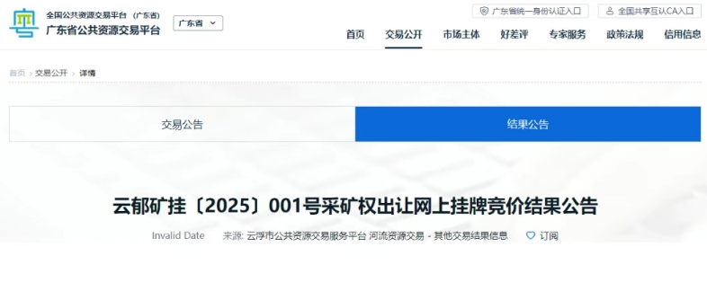 近日,廣東省云浮市郁南縣發(fā)布郁南縣南江河蓮塘河段河砂可采區(qū)開采權(quán)第二次掛牌競價結(jié)果公告,郁南縣興正建材有限公司以855.36萬元成功競得該項目