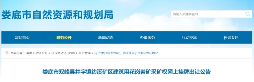據(jù)悉,湖南省婁底市雙峰縣井字鎮(zhèn)約溪礦區(qū)建筑用花崗巖礦采礦權掛牌出讓,擬設采礦權保有控制資源量為2388.5萬噸,可采儲量為2309.4萬噸,生產(chǎn)規(guī)模200萬噸/年,擬出讓年限12.5年,7070萬元起拍。