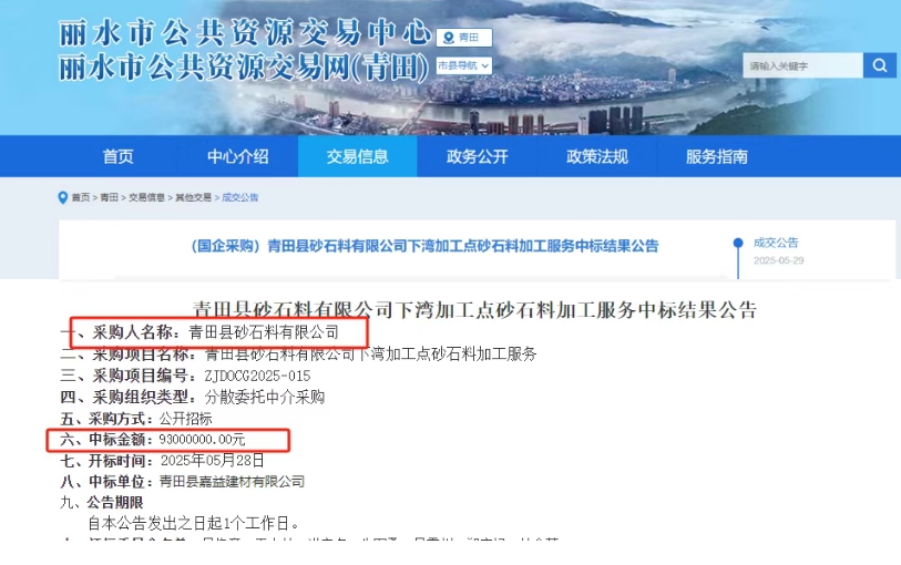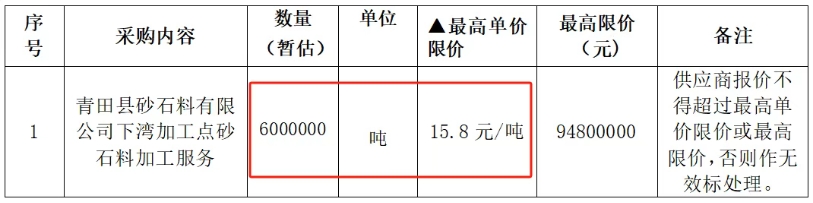 日前,浙江麗水市公共資源交易網(wǎng)發(fā)布青田縣砂石料有限公司(當(dāng)?shù)貒螅┫聻臣庸c(diǎn)砂石料加工服務(wù)中標(biāo)結(jié)果公告,青田縣嘉益建材有限公司(當(dāng)?shù)孛衿螅┮?300萬元中標(biāo)。據(jù)招標(biāo)公告顯示,該項(xiàng)目石料暫估600萬噸,要求中標(biāo)企業(yè)生產(chǎn)的砂子含泥量≤5%,磨度細(xì)數(shù)≤2.5mm。據(jù)測算,該項(xiàng)目中標(biāo)單價(jià)15.5元/噸。 據(jù)悉,加工服務(wù)包括但不限于鄂破口上料,原料堆放壘高,場內(nèi)裝車短駁,各種粒徑的砂石料加工、分類堆放、產(chǎn)品裝車、污水處理等工作。采購人提供加工所需的場地及加工生產(chǎn)所需的主要設(shè)備設(shè)施,并提供原料(宕渣、砂卵石等)并運(yùn)入堆料場內(nèi)。 根據(jù)招標(biāo)公告顯示,加工場內(nèi)有專門流水線分離原砂,對原砂里分離出來的鵝蛋石進(jìn)行砂加工。后續(xù)根據(jù)市場變化及采購方要求,如需要求砂石磨度細(xì)數(shù)≤2.5mm,年產(chǎn)量達(dá)到200萬噸/年等情況,中標(biāo)人負(fù)責(zé)設(shè)備產(chǎn)能升級或其他情況以達(dá)到其需求,費(fèi)用不再額外支付。 投標(biāo)人需自行配備2臺規(guī)格不小于6噸的鏟車。 該項(xiàng)目加工服務(wù)期限36個(gè)月,月生產(chǎn)成品總量不小于15萬噸,年生產(chǎn)成品總量不小于160萬噸。現(xiàn)有設(shè)備在合同簽訂后3日內(nèi)完成交付,并在7日內(nèi)投入生產(chǎn),若由于投標(biāo)人原因未按時(shí)投入生產(chǎn)的,罰款2萬元/天在次月加工費(fèi)中扣除。