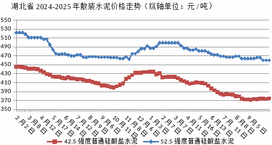 9月份,湖北省部分地區(qū)受到雨水天氣影響,戶外工程施工進度受阻,對水泥的需求量有所減少。同時,水泥生產(chǎn)企業(yè)庫存壓力逐漸顯現(xiàn),為消化庫存、維持正常生產(chǎn)節(jié)奏,部分企業(yè)不得不下調(diào)水泥價格。值得注意的是,42.5強度礦渣硅酸鹽水泥同比價格實現(xiàn)上漲,這主要得益于其在特定工程領域的需求相對穩(wěn)定,且原材料成本有所上升,在一定程度上支撐了該品種水泥的價格。