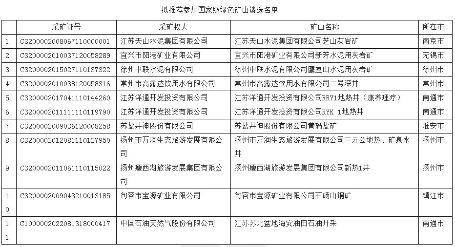 附件:擬推薦參加國家級綠色礦山遴選名單