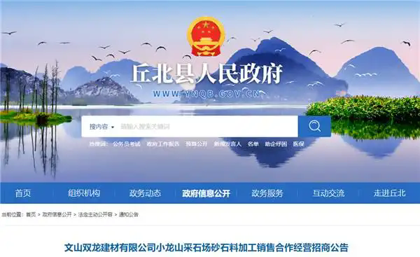 10月11日,云南省文山州國(guó)有企業(yè)——文山雙龍建材有限公司發(fā)布公告,擬公開征集合作經(jīng)營(yíng)方,共同開發(fā)經(jīng)營(yíng)文山州丘北縣雙龍營(yíng)鎮(zhèn)小龍山建筑石料用石灰?guī)r礦,合作期限為3年。