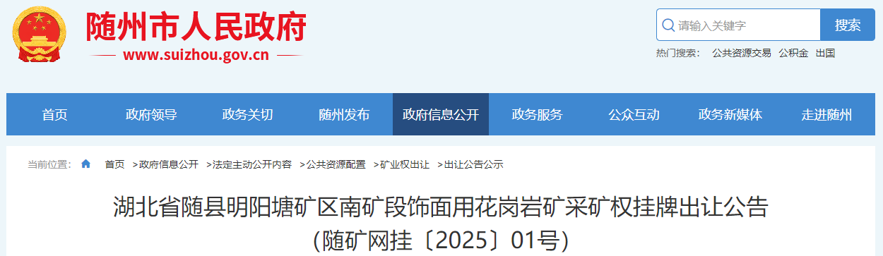 日前,湖北隨州人民政府發(fā)布湖北省隨縣明陽(yáng)塘礦區(qū)南礦段飾面用花崗巖礦采礦權(quán)掛牌出讓公告。該項(xiàng)目保有資源儲(chǔ)量8050.6萬(wàn)方,根據(jù)礦產(chǎn)資源開(kāi)發(fā)利用和生態(tài)復(fù)綠方案,該礦設(shè)計(jì)可作建筑砂石料綜合回收利用的尾礦尾渣及風(fēng)化層剝離量15874.61萬(wàn)噸,年生產(chǎn)規(guī)模建筑用花崗巖563萬(wàn)噸(綜合利用);設(shè)計(jì)服務(wù)年限29.2年(含基建期1年)。掛牌起始價(jià)為人民幣80252.71萬(wàn)元。本次出讓不接受自然人或企業(yè)聯(lián)合體報(bào)名。