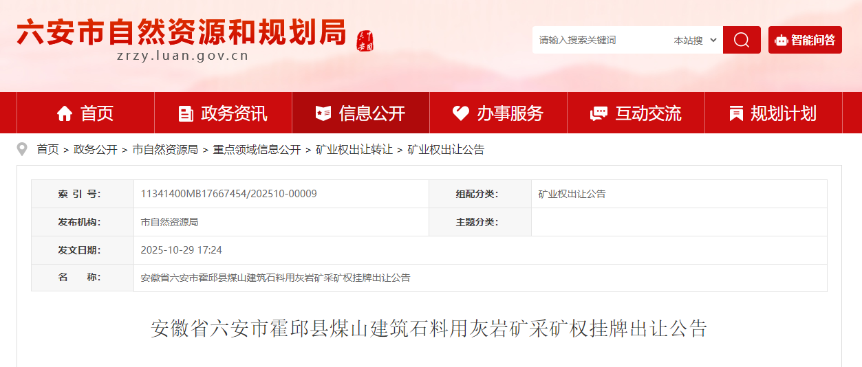 近日,安徽省六安市霍邱縣煤山建筑石料用灰?guī)r礦,本次出讓礦資源量2584.80萬立方米(7185.74 萬噸)。出讓期限14年8個月(含基建期1年6個月),起始價:63000萬元,經(jīng)計算單價超8.76元/噸。