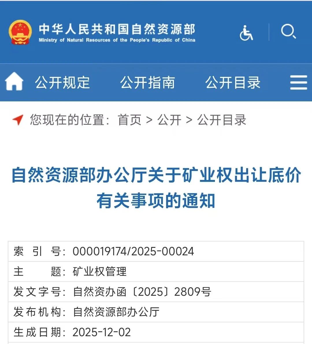 自然資源部辦公廳關(guān)于礦業(yè)權(quán)出讓底價(jià)有關(guān)事項(xiàng)的通知