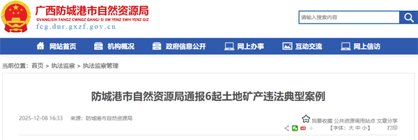3、防城區(qū)某建設(shè)工程有限公司非法占地案:該公司未經(jīng)批準(zhǔn),擅自占用防城區(qū)那良鎮(zhèn)那巴村土地建設(shè)河道采砂工程堆放場(chǎng),違反《中華人民共和國土地管理法》。2025年4月立案,7月處罰,責(zé)令退還土地、拆除新建建構(gòu)筑物并恢復(fù)原狀,罰款89.055萬元。