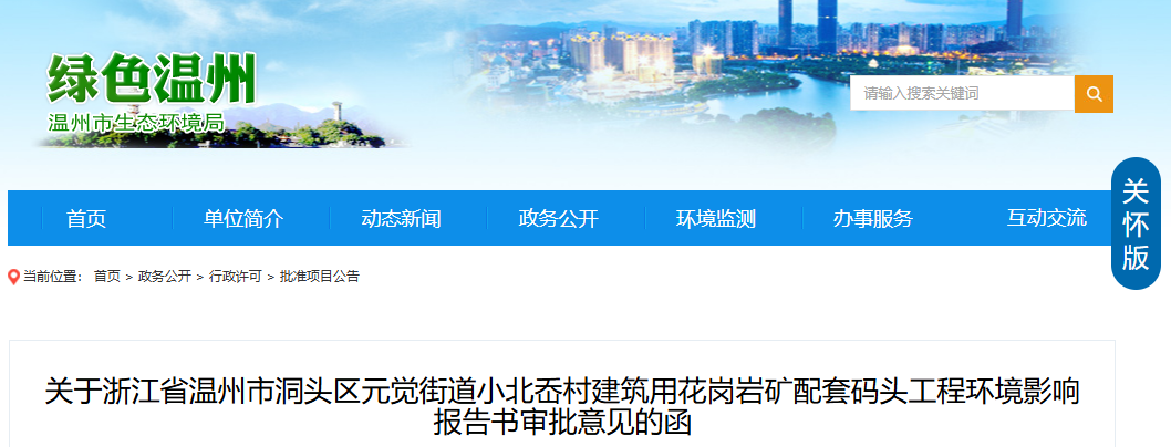 近日,浙江溫州市生態(tài)環(huán)境局發(fā)布關于受理《浙江省溫州市洞頭區(qū)元覺街道小北岙村建筑用花崗巖礦配套碼頭工程環(huán)境影響報告書》的公示,此標志著該項目取得最新進展。