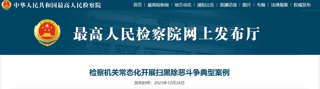 12月24日,最高檢發(fā)布一批檢察機(jī)關(guān)常態(tài)化開展掃黑除惡斗爭(zhēng)典型案例。安徽一涉黑惡組織為非作惡、欺壓群眾,長(zhǎng)期超出采礦許可證范圍大肆非法采砂數(shù)百萬噸,造成國(guó)家礦產(chǎn)資源重大損失,還腐蝕多名國(guó)家工作人員充當(dāng)“保護(hù)傘”,稱霸一方,主犯被判有期徒刑二十五年。