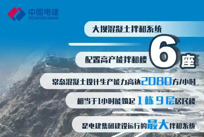 在混凝土相關(guān)系統(tǒng)方面,該項目配備6座高產(chǎn)能拌和樓,常態(tài)混凝土設(shè)計生產(chǎn)能力達(dá)2080方/小時(相當(dāng)于1小時筑起1棟9層居民樓),是中電建建設(shè)運(yùn)行的最大拌和系統(tǒng);混凝土制冷系統(tǒng)設(shè)計制冷容量3750萬千卡,可持續(xù)供應(yīng)低溫混凝土,且實行24小時專人值守,全天候監(jiān)控車間安全。
