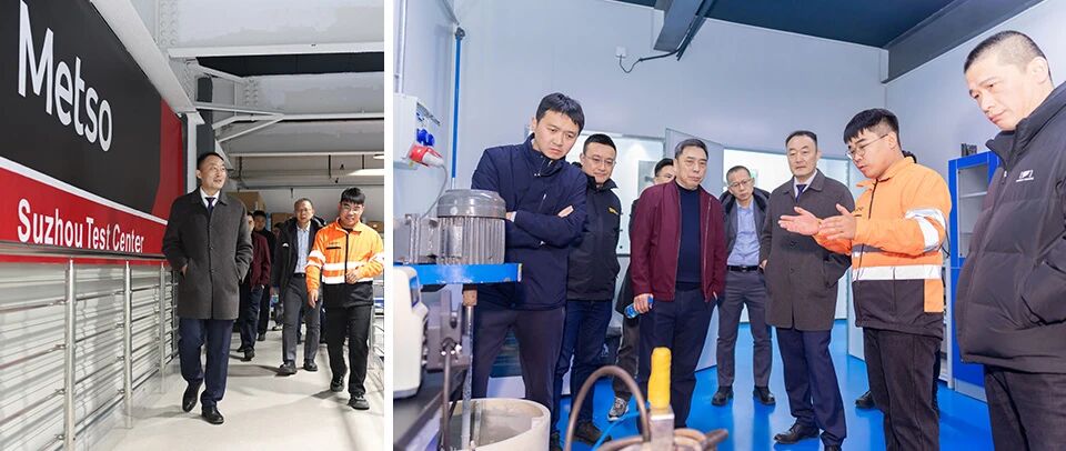隨后,嘉賓參觀了2025年9月全新落成的蘇州試驗中心。該中心配備專業(yè)設(shè)備與技術(shù)團隊,可開展磨礦、浮選、濃密和過濾等工藝的科學試驗,驗證工藝與設(shè)備適配性,并提供工藝優(yōu)化與設(shè)備選型支持。在蘇州工廠生產(chǎn)現(xiàn)場,嘉賓還實地觀摩了臥式壓濾機、高壓輥磨機、襯板更換機械手等設(shè)備,深入了解美卓從研發(fā)設(shè)計到生產(chǎn)制造的全鏈條能力。
