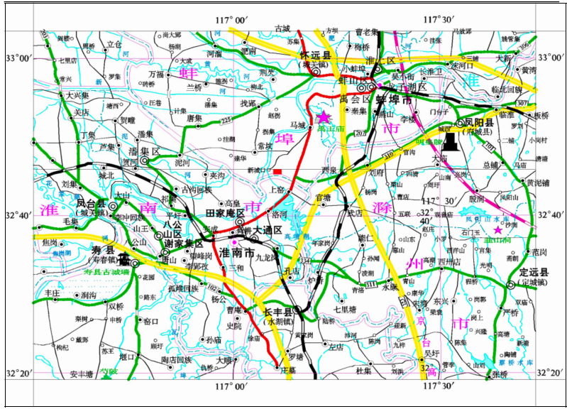 安徽省蚌埠市高新區(qū)大峰山建筑石料用灰?guī)r、水泥配料用頁巖礦位于蚌埠市南西229方向約28千米,馬城鎮(zhèn)南東130方向8.0千米處。礦區(qū)向西7千米為206國道,沿國道向北21千米至懷遠(yuǎn)縣城,向東北27千米至蚌埠市,向西南19千米至淮南市?;春佑傻V區(qū)西北側(cè)約1千米處南北向通過,窯河由礦區(qū)西南側(cè)約0.8千米處南北向通過,交通較為便利。