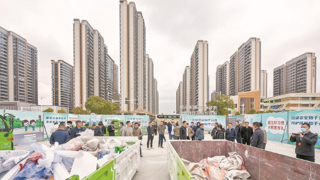 在陳埭鎮(zhèn),當(dāng)?shù)赝ㄟ^建設(shè)建筑垃圾規(guī)范化分揀中心、配備環(huán)保抑塵設(shè)施,有效應(yīng)對(duì)了因城市開發(fā)密集帶來的建筑垃圾治理壓力。在該鎮(zhèn)的御湖鏡小區(qū),與會(huì)人員看到小區(qū)設(shè)置了回收箱式建筑垃圾臨時(shí)交付點(diǎn),一旁墻面上張貼著《晉江市建筑垃圾處置設(shè)施公示牌》,設(shè)施名稱、經(jīng)營(yíng)單位、責(zé)任單位、聯(lián)系電話、開放時(shí)間、消納種類等信息一目了然。據(jù)悉,在晉江市,所有小區(qū)、社區(qū)基本已設(shè)置中轉(zhuǎn)站、臨時(shí)堆放點(diǎn),并與專業(yè)企業(yè)簽訂處置協(xié)議,建立了完善的建筑垃圾管理臺(tái)賬,做到了建筑垃圾產(chǎn)生源頭、臨時(shí)堆放、運(yùn)輸、處置等環(huán)節(jié)均有管理臺(tái)賬可查,實(shí)現(xiàn)了建筑垃圾治理的全過程監(jiān)管。