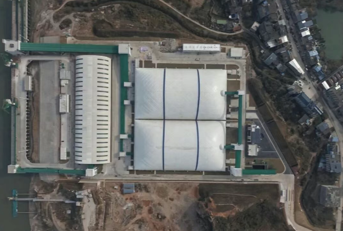 建設(shè)過程中,項目部秉持“精益求精、追求卓越”的工匠精神,統(tǒng)籌推進安全、質(zhì)量與進度管理,創(chuàng)新應(yīng)用多項綠色技術(shù)與高效管理措施。項目采用全封閉廊道運輸、粉塵抑制系統(tǒng)等先進環(huán)保工藝,實現(xiàn)砂石等散貨運輸全程清潔化作業(yè),有效踐行長江大保護戰(zhàn)略。氣膜倉貨棚采用無梁無柱設(shè)計,空間利用率提升30%以上,密閉結(jié)構(gòu)從源頭阻斷粉塵擴散。智能監(jiān)測系統(tǒng)實時調(diào)控作業(yè)環(huán)境指標,筑牢生態(tài)安全防線。