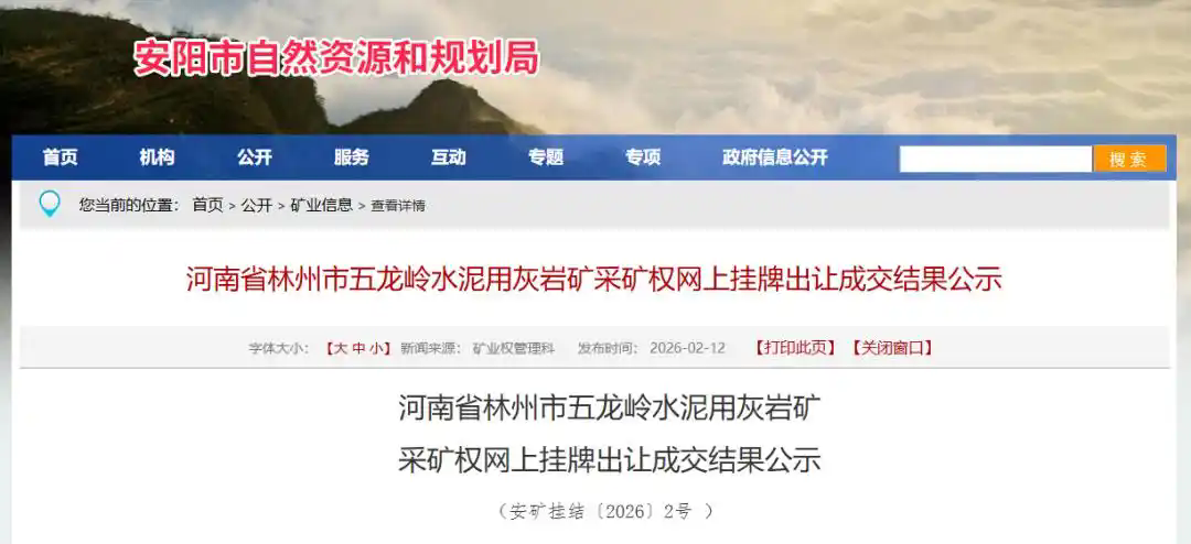 競得人林州中聯(lián)新材料有限公司成立于2020年8月24日,主要經(jīng)營范圍涵蓋礦產(chǎn)資源(非煤礦山)開采、新材料技術(shù)推廣服務(wù)、水泥制品制造與銷售、砼結(jié)構(gòu)構(gòu)件生產(chǎn)、建筑材料加工與銷售等多個(gè)領(lǐng)域,屬民營企業(yè)。2021年,該公司競得林州市橫水鎮(zhèn)馬澗溝建筑石料用灰?guī)r礦,資源儲(chǔ)量達(dá)0.18億噸,生產(chǎn)規(guī)模為350萬噸/年,出讓金為0.8億元。