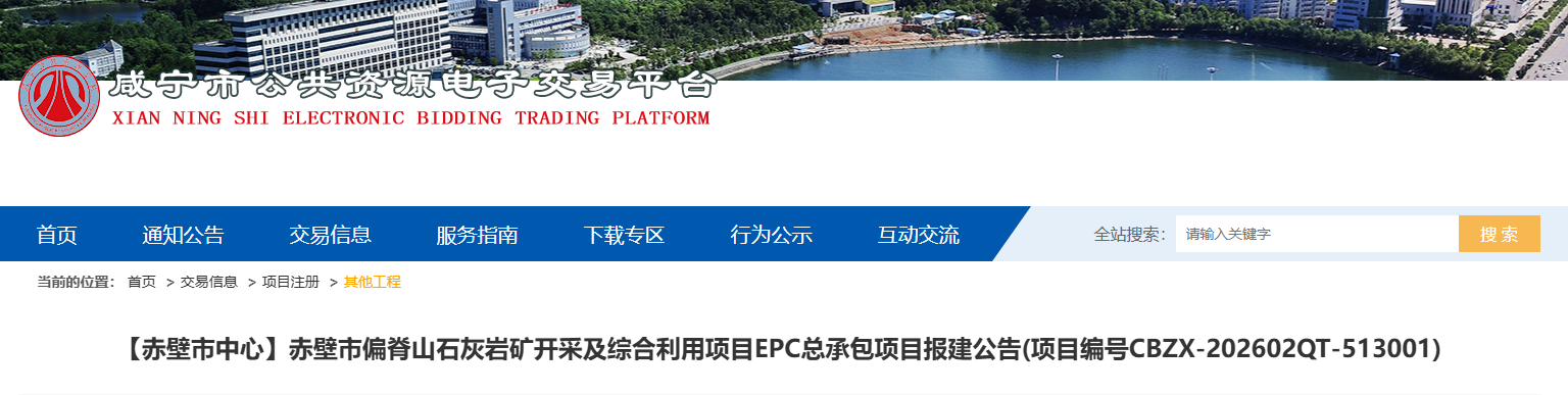 近日,湖北咸寧市資源電子交易平臺發(fā)布赤壁市偏脊山石灰?guī)r開采及綜合利用項目EPC總承包招標公告,本工程是EPC總承包招標。包含勘察、設(shè)計、采購、施工等。招標合同估算價6.94億元,項目礦區(qū)資源儲量超3.25億噸,設(shè)計建設(shè)規(guī)模980萬噸/年。