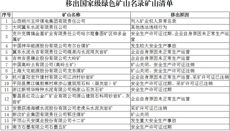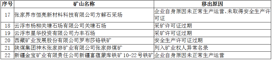 以下為22家被移出礦山的詳細(xì)信息,按序號(hào)整理,明確標(biāo)注礦山名稱及移出原因,方便大家快速查閱: