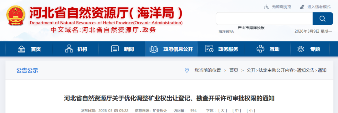 近日,河北省自然資源廳印發(fā)《關(guān)于優(yōu)化調(diào)整礦業(yè)權(quán)出讓登記、勘查開采許可審批權(quán)限的通知》(冀自然資規(guī)〔2026〕1 號),針對非金屬露天礦山明確了審批權(quán)限劃分、出讓計(jì)劃管控、開采方式規(guī)范等一系列新規(guī),旨在推動礦產(chǎn)資源科學(xué)管理與礦業(yè)高質(zhì)量發(fā)展。砂石骨料相關(guān)的建筑用砂、建筑石料用灰?guī)r、砂巖等礦產(chǎn)作為非金屬露天礦山的重要類別,將同步適用新規(guī)要求,新規(guī)將于2026年5月1日起正式實(shí)施。