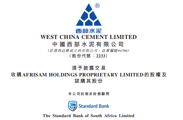 二是西部水泥向Afri Sam認購新增股份。交易最高代價為25億蘭特(約合1.45億美元或11.26億港元),最終金額將根據(jù)慣常購買價格調(diào)整及相關扣減進行確定,西部水泥將以內(nèi)部資金及銀行借款支付相關代價。