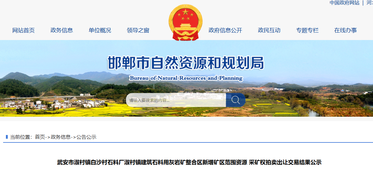值得注意的是,本出讓公告中的礦區(qū)范圍、面積、資源儲量為武安市淑村鎮(zhèn)白沙村石料廠淑村鎮(zhèn)建筑石料用灰?guī)r礦整合區(qū)新增礦區(qū)范圍資源采礦權(quán)資源分布的范圍、面積、資源儲量。本出讓公告中的采礦權(quán)出讓年限、開采礦種、開采標(biāo)高為整個整合區(qū)出讓年限、開采礦種、開采標(biāo)高。