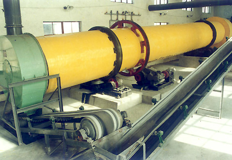 石灰通過(guò)進(jìn)料裝置進(jìn)入冷卻機(jī)。冷卻機(jī)回轉(zhuǎn),其內(nèi)揚(yáng)料板帶動(dòng)物料與空氣進(jìn)行充分熱交換,同時(shí)隨著按照設(shè)計(jì)斜度和轉(zhuǎn)速不停轉(zhuǎn)動(dòng)的筒體,物料也在筒體內(nèi)周期性地翻滾前進(jìn),從而把物料由進(jìn)料端輸送到出料端,并保證在物料在通過(guò)單筒冷卻機(jī)的時(shí)間內(nèi)將其冷卻到環(huán)境溫度+80℃以下,從而完成整個(gè)冷卻過(guò)程。