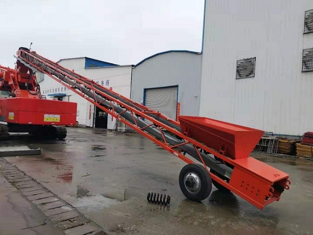 在上料皮帶機的下面,設計有萬向輪,可沿桁架軸向運動,這樣的設計使布料機行走時可根據(jù)需要將上料布料機拖在尾部行走而無需拆卸,或?qū)⑸狭夏z帶機駝在布料膠帶機上行走,上料膠帶機的上駝或卸下由布料機自行完成,無需使用吊車等輔助設備。