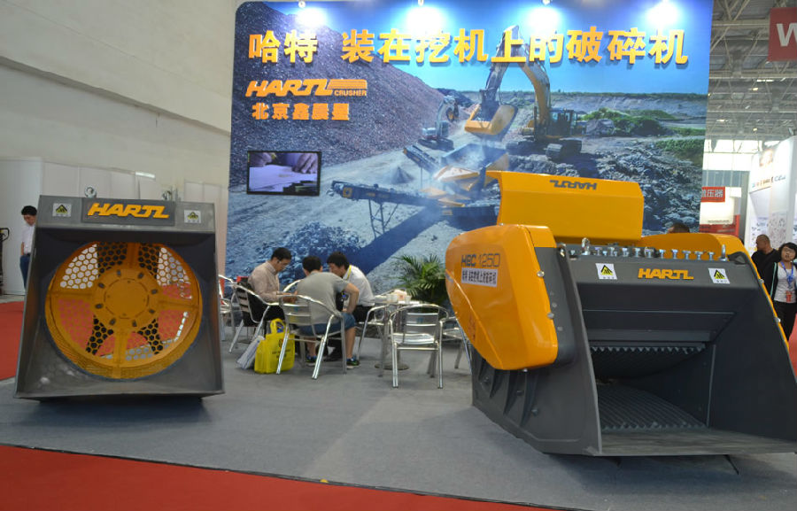 北京鑫晨星攜帶哈特牌裝在挖掘機(jī)上的破碎機(jī)亮相于BICES 2015