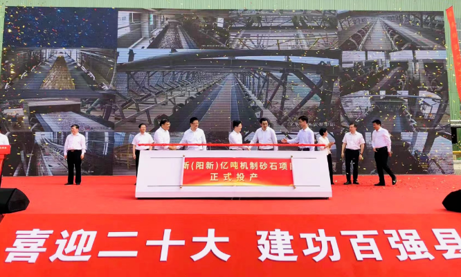 2022年9月26日上午,華新(陽(yáng)新)億噸機(jī)制砂石項(xiàng)目正式投產(chǎn)儀式在陽(yáng)新縣隆重舉行。