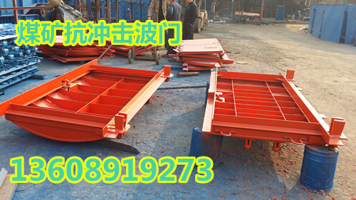 礦山生產(chǎn)的抗沖擊波活門由門框、門扇、閉鎖裝置、餃頁(yè)等部件組成。