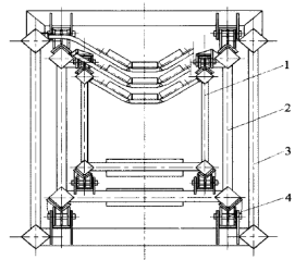 由于整個臂架為懸臂結(jié)構(gòu),雖然基礎(chǔ)臂有伸縮油缸和卷筒支架保證其平衡,但是鋼材選用時還得考慮盡量減輕自重,以免受力分析時不能保證整個懸臂的穩(wěn)定,而且設(shè)計時還得考慮保證剛度。目前大多數(shù)布料臂架的設(shè)計方案都是采用管材焊接構(gòu)成的。弦桿都使用高強度方形鋼管來滿足支承、滑動方面的結(jié)構(gòu)設(shè)計需要;腹桿使用圓型鋼管;考慮到伸縮過程中托輥的運動,上弦平面內(nèi)同樣采用圓形鋼管材料來作托輥橫梁兼作水平腹桿。