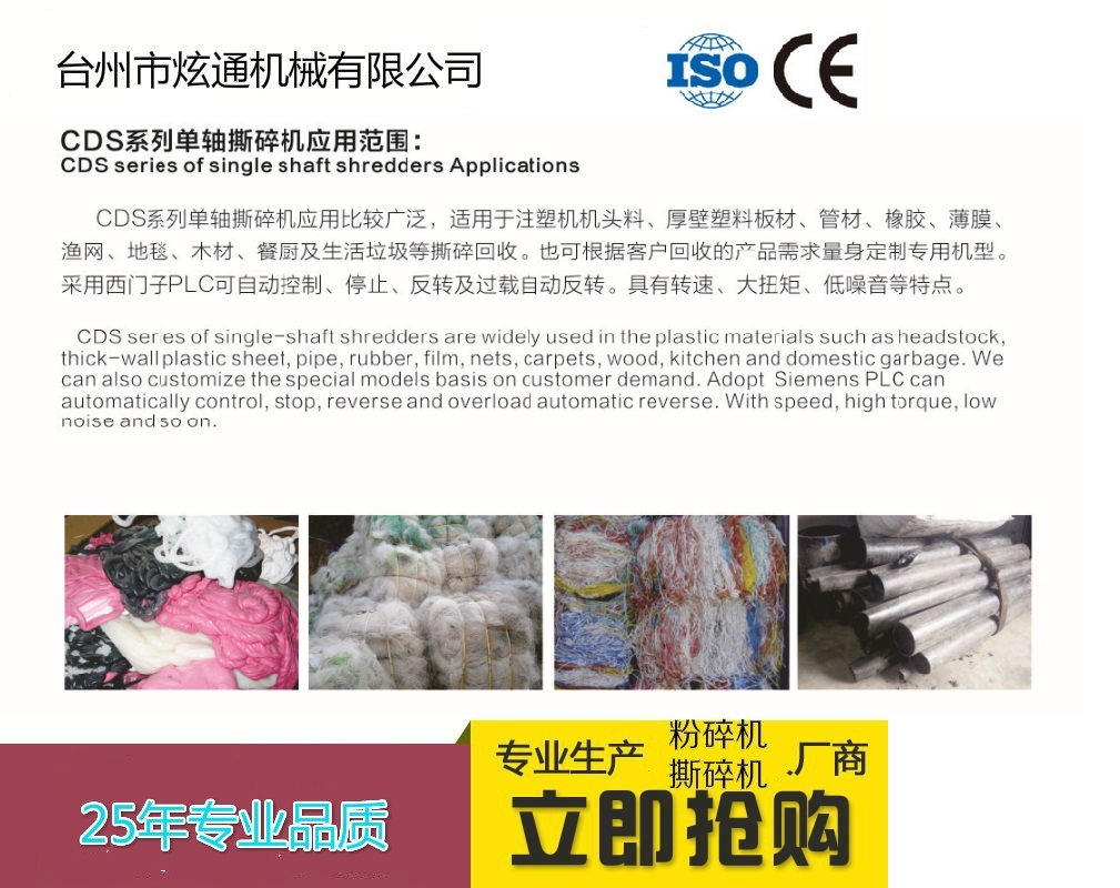 大塊機(jī)頭料單軸撕碎機(jī)采用歐洲先進(jìn)技術(shù),主要用于塑膠行業(yè)中各種厚壁廢舊料,邊角料的撕碎回收,對特厚、韌性、大型物料(特大機(jī)頭料、水口料、澆口料、大型塑料管材管件、大口徑厚壁PE管材、PE機(jī)頭料、塑料包裝桶、大捆打包塑料薄膜、大捆打包噸包袋編織袋、卷膜、紙張、纖維、塑料箱筐、塑料垃圾桶、電視機(jī)殼、電腦殼、打印機(jī)外殼、叉車托板、塑膠卡板、塑料周轉(zhuǎn)箱等)能有效撕碎破碎粉碎,且適合塑料、橡膠、木材各種材料破碎粉碎回收。