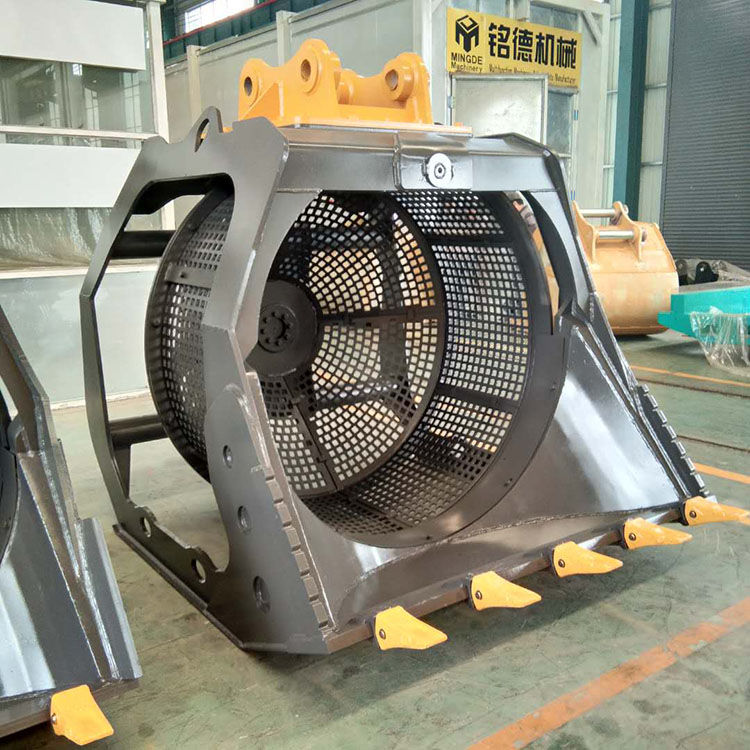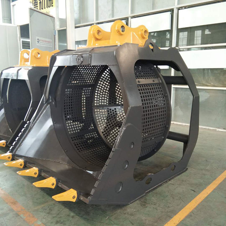 篩分斗是一種工程機械多功能輔具,可裝配在挖掘機、裝載機或滑移裝載機上。使用篩分破碎鏟斗可以一步完成固體物料的篩分、破碎、曝氣、混合、分離、喂料和裝載等作業(yè)。