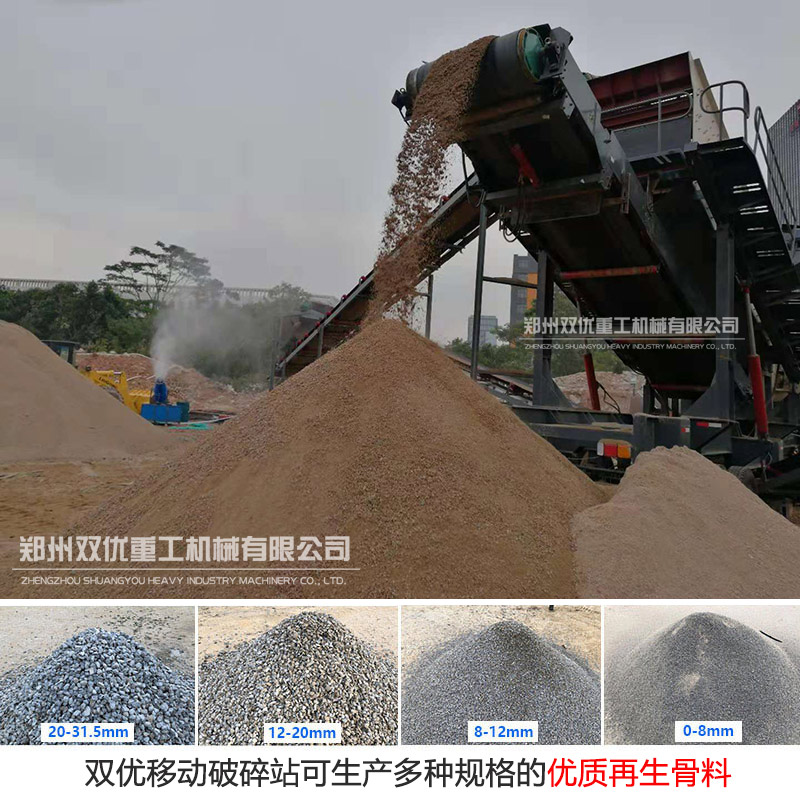 雙優(yōu)履帶式建筑垃圾處理設備的引入提高了建筑垃圾資源化處置的速度,顯著改善了當?shù)氐纳鷳B(tài)生活環(huán)境,更創(chuàng)造出較大的經(jīng)濟價值。該設備投產(chǎn)后每天的處理量可達2000噸/天,建筑垃圾經(jīng)過破碎以后,可生成三種再生骨料,分別出0-5mm、5-15mm、20-31.5mm,后續(xù)可用于制作再生砂漿、再生透水磚、再生道路水穩(wěn)拌合料等,為客戶贏得顯著。