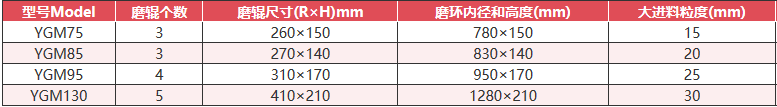 四. YGM系列系列雷蒙磨粉機技術(shù)參數(shù):