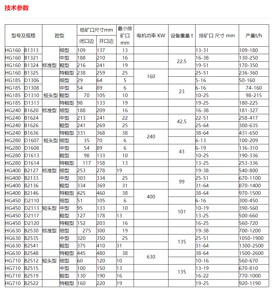 5、應(yīng)用靈活,HG系列圓錐破碎機(jī)只需更換定錐襯板、 動(dòng)錐襯板、 加高座, 破碎腔型就可以從標(biāo)準(zhǔn)型粗碎到短頭超細(xì)腔型任意變換;