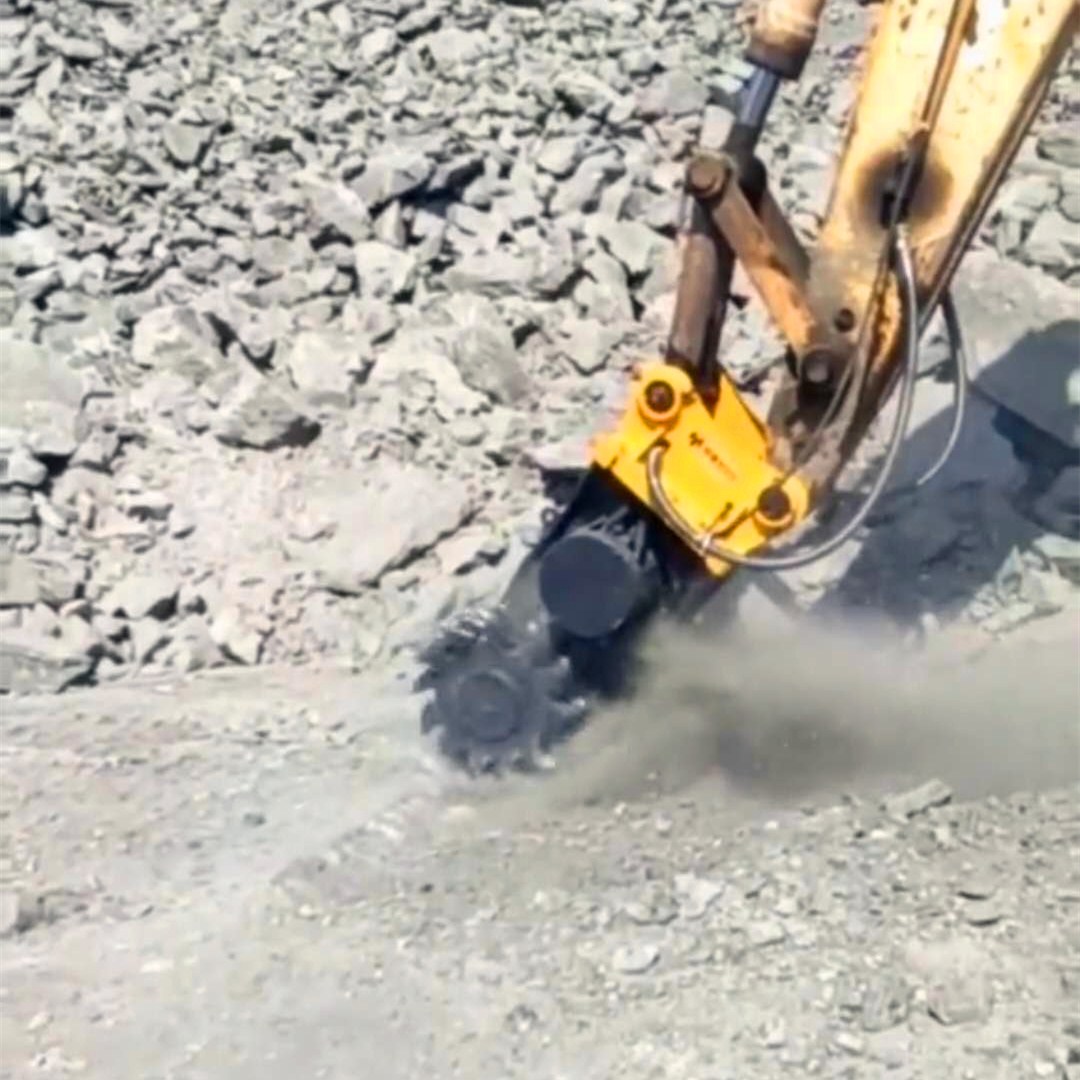 1. 銑挖范圍廣:在中低硬度的巖石如風(fēng)化巖、凝灰?guī)r中可達(dá)到25~ 120m3/h(隨巖石的密度、破碎度不同而不同),也可銑挖無鋼筋或有少量鋼筋的混凝土,使用裝在15噸挖機(jī)上的銑挖機(jī),可以輕松的銑挖配有30mm以下直徑鋼筋的混凝土。